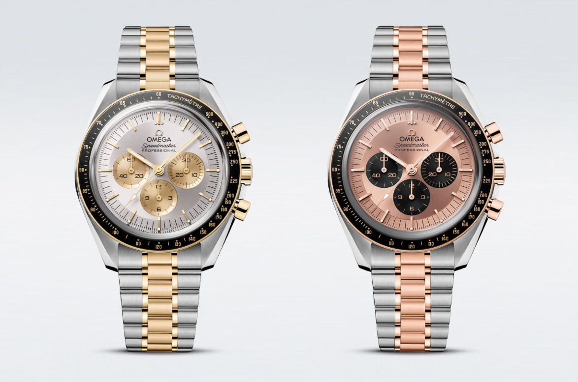While mostly known as a stainless steel top super clone watches UK, the Omega Speedmaster Professional Moonwatch has been seen in multiple precious metals over the years, including recent Moonshine, Canopus or Sedna gold alloys. With two-tone watches somehow making a comeback in the past few years, it’s without much surprise that Omega releases today a new duo of bicolor, steel-and-gold Speedmaster Moonwatch models, using the brand’s proprietary Sedna (pink) and Moonshine (yellow) alloys next to classic steel, as well as several gold-toned accents on the dial.